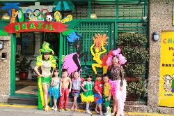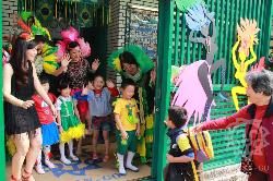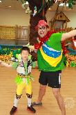 2016.03.31(四)兩週的巴西活動,今天有著熱鬧的嘉年華會登場,小朋友們身穿亮麗服裝,戴上自製的羽毛頭套,隨著音樂舞動,老師們也穿上華麗巴西嘉年華服裝迎接小朋友上課,讓今日早晨非常熱情喔!