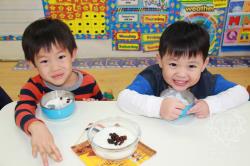 下午點心-<米布丁>埃及經典; roze blaban是一道簡單的牛奶料理,簡單的用牛奶加上米飯和糖,混合直到變稠為止。待冷卻後,加上切碎的椰子,葡萄乾和堅果即可。香、濃、甜的好滋味,讓孩子們非常喜愛喔!