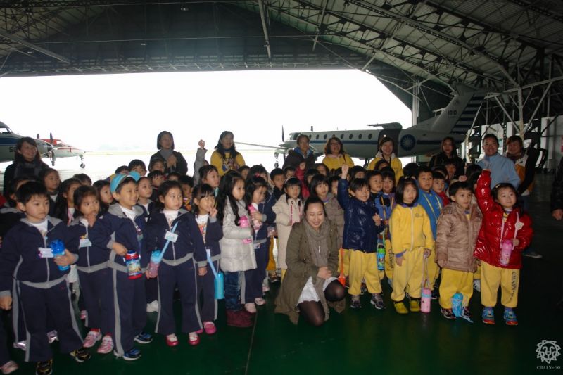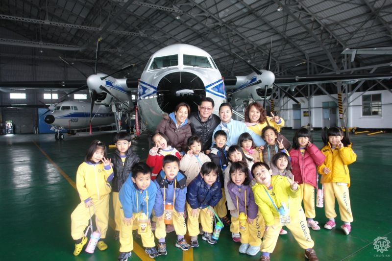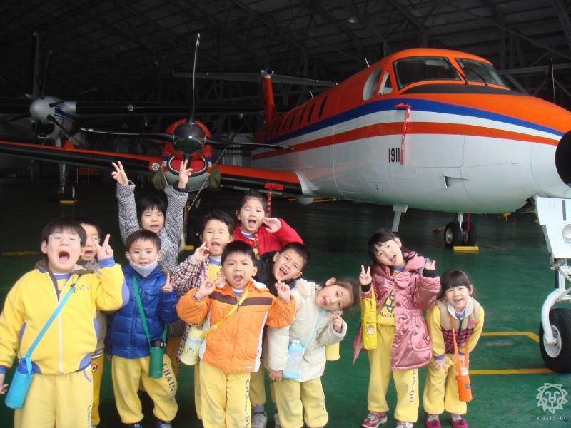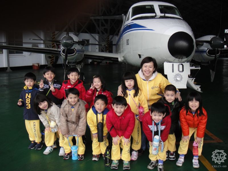 叔叔說在機艙內不可以拍照,所以老師都在外面幫我們拍照呢。