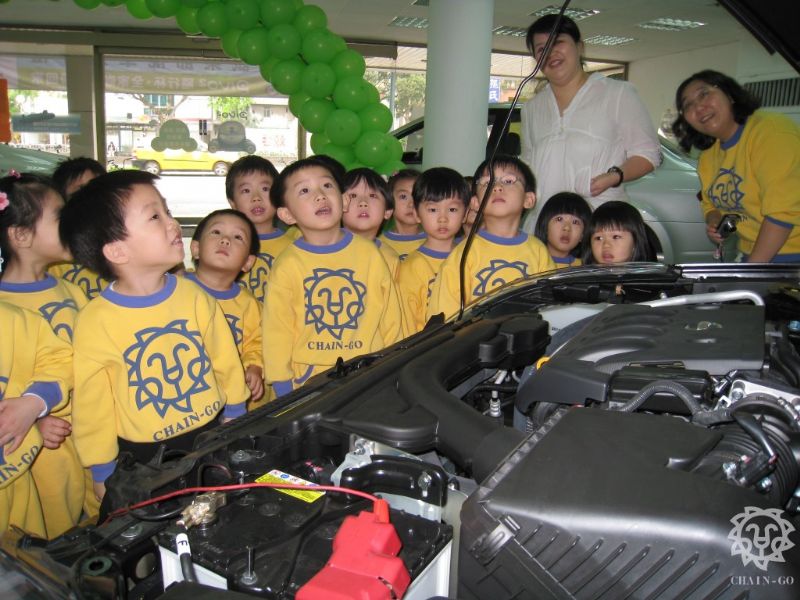 孩子們好專心的聆聽小朱哥哥介紹車子的結構喔。