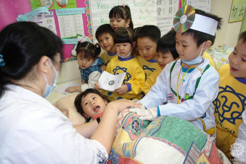 蔡老師抱淳霈看保溫箱裡的寶寶。