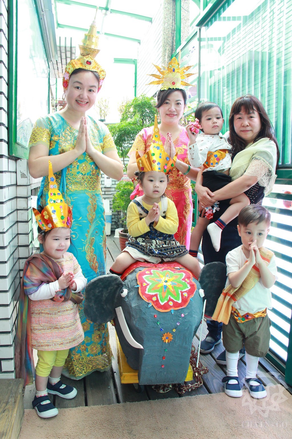 兩人一起合作為大象披上漂亮的絲巾