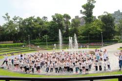 噴水池畔做健康操