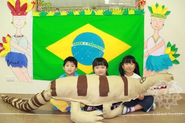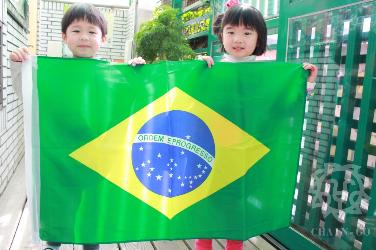 2016.03.21(一)隆重揭開巴西序幕,一大早門口老師們穿上巴西足球裝熱情和小朋友打招呼"oi"。運用世界地圖我們認識了巴西國家的地理位置,最重要的在境內的亞馬遜河,是世界上流量最大的河流。也介紹了國旗顏色主要的涵義:*綠色─巴西國土的茂密叢林*黃色─豐富的礦產資源*天球儀的...