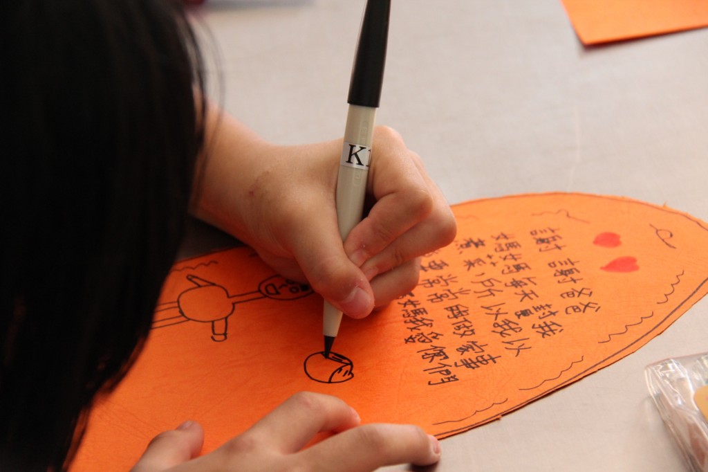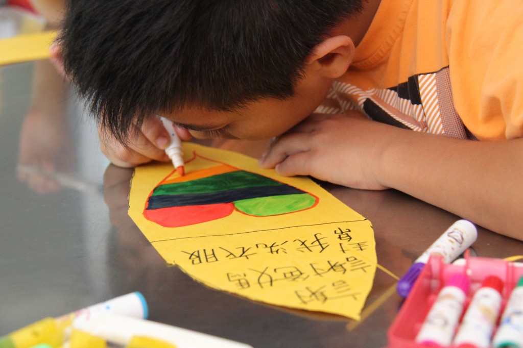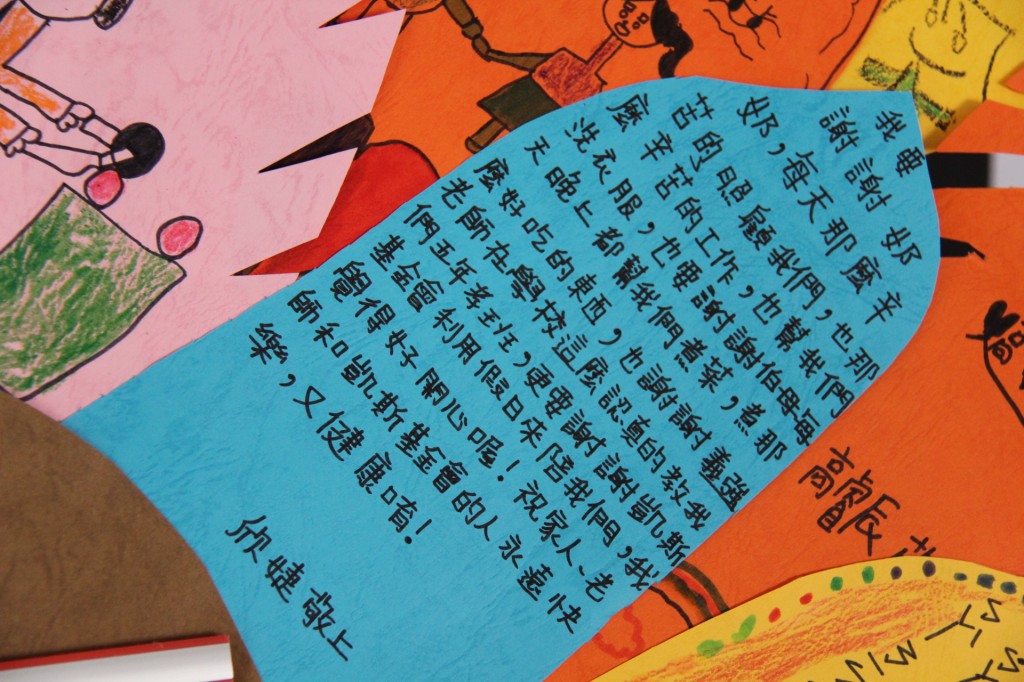 Debbie老師一起陪伴孩子寫上感恩的話