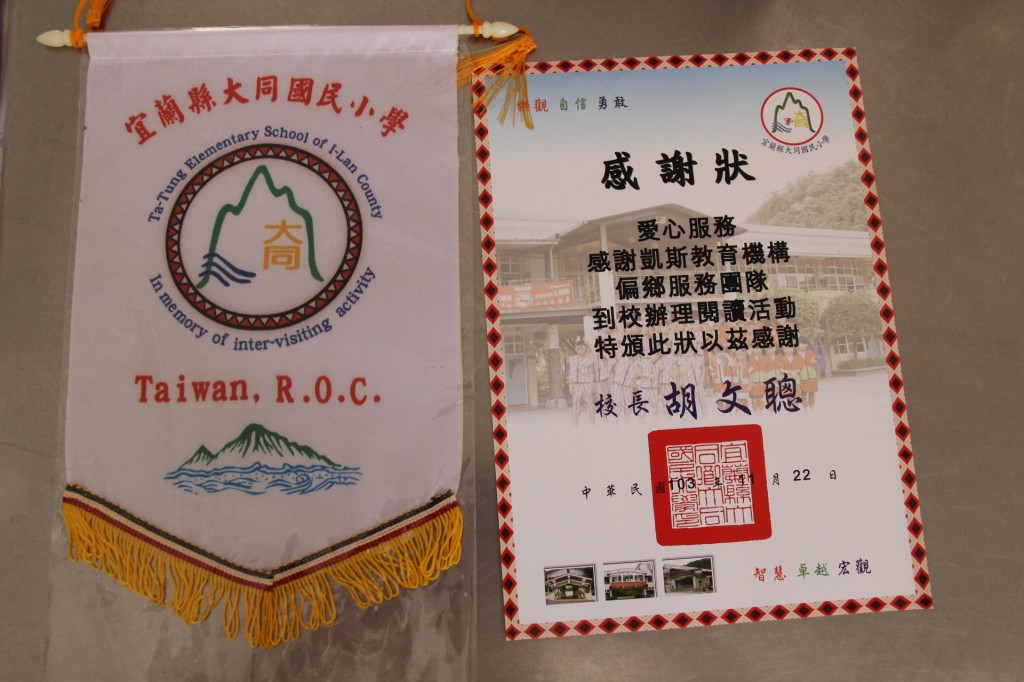 胡校長特別致贈感謝狀給凱斯