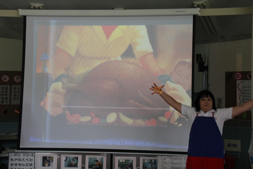 萱萱老師與大家介紹火雞美勞