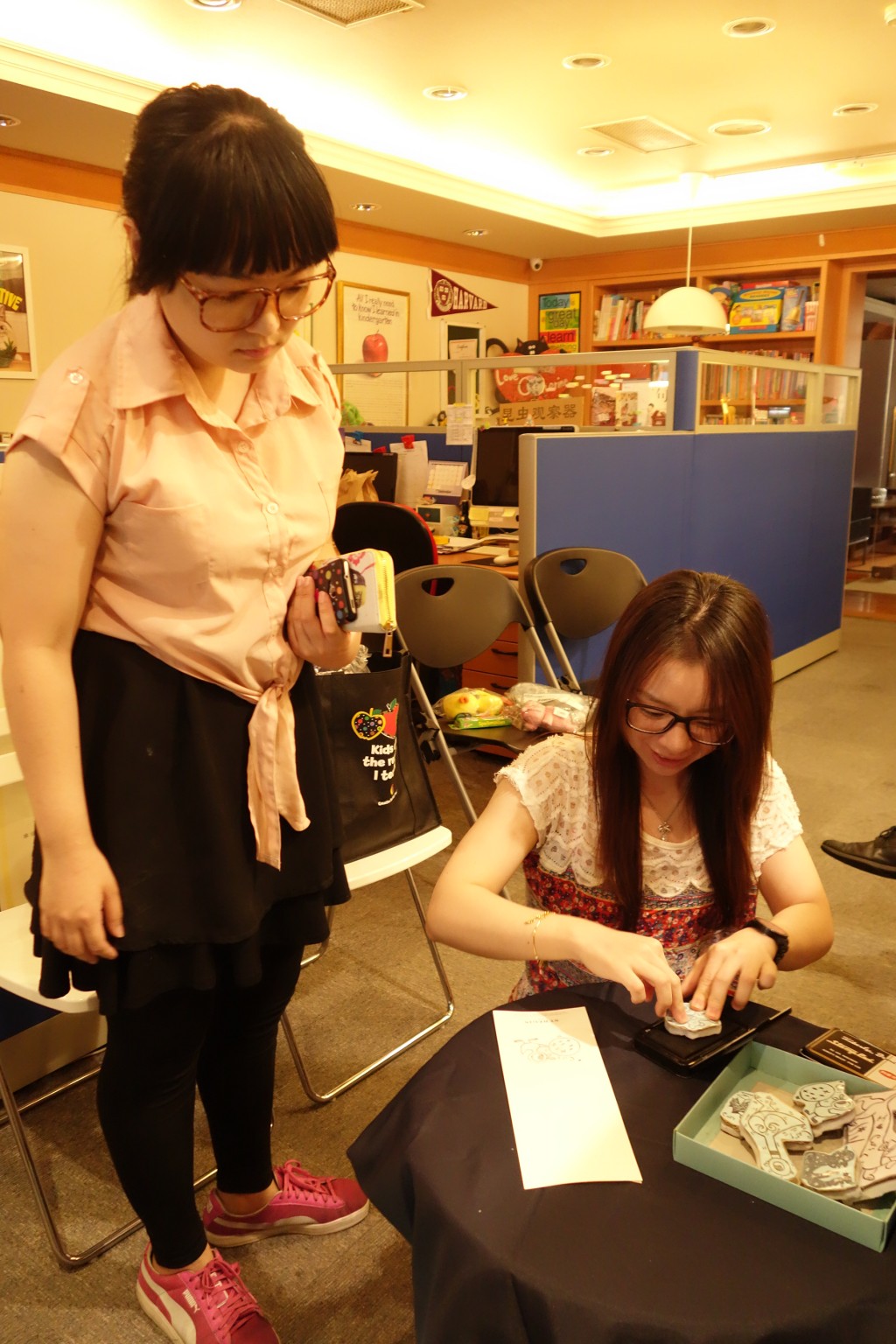 大家圍在一起做美勞,好棒!