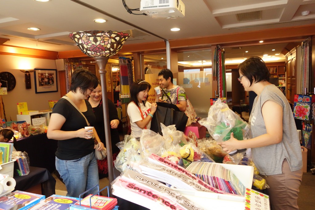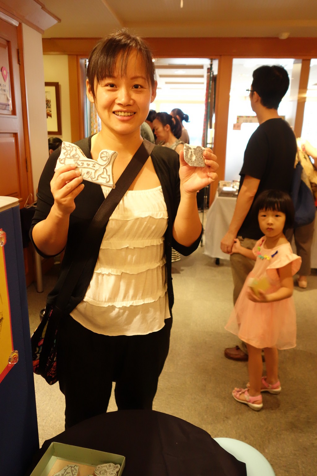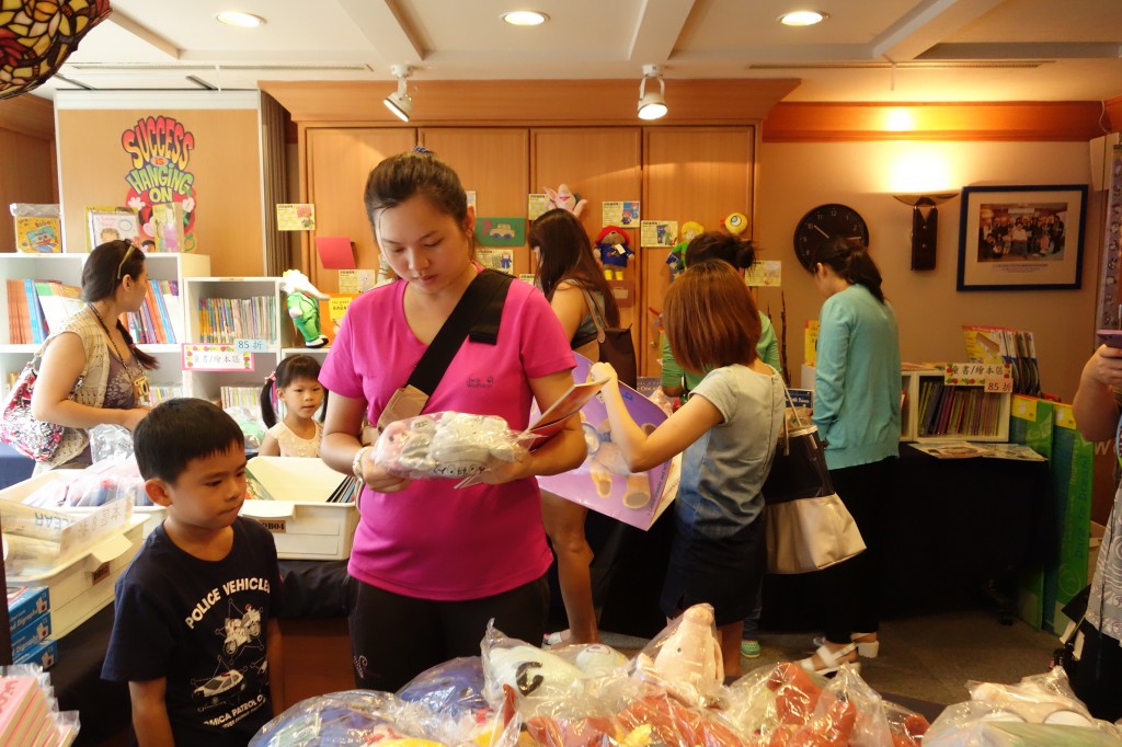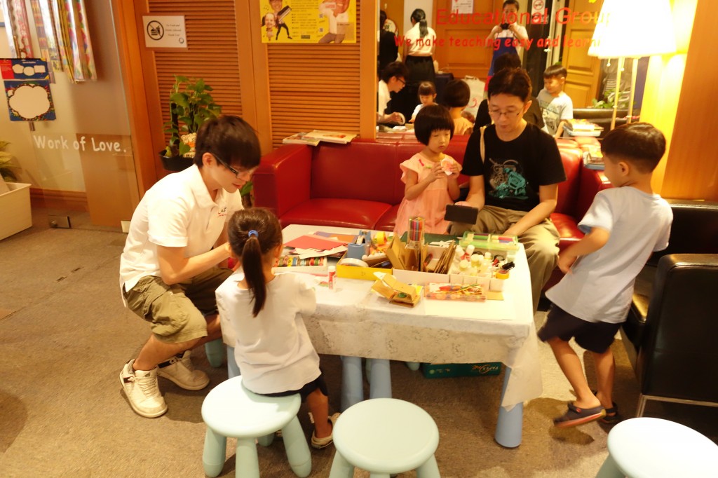 媽媽在挑東西,小朋友可以體驗美勞