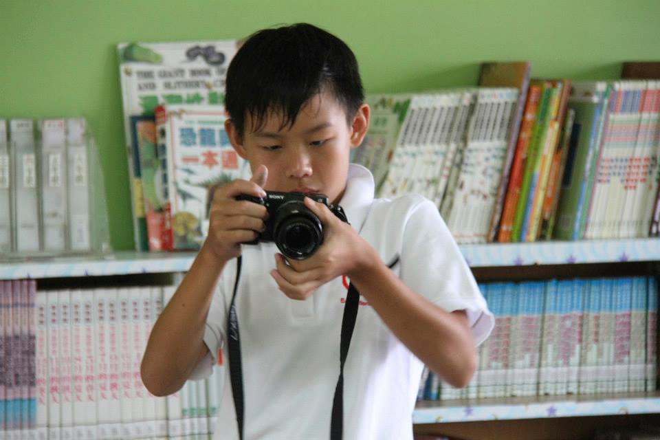 王保駿小朋友很專注地拍照