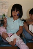 Ian完成身體彩繪囉!是小熊維尼的圖案喔