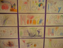 小班的小朋友在英文名字上畫上自己喜歡顏色