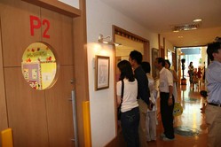 畢業生在中小班學弟妹的掌聲中進入律動教室