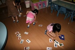 老師與孩子們一起回顧過去活動的照片,一起回憶