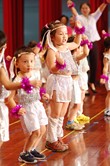 K1班Fanny老師與K2班Arisa老師的枕頭大戰即將展開。孩子們將所有的武器都提供給自己的班導師