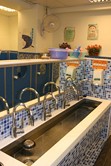 水槽中放滿了溫熱水 準備幫孩子們洗澎澎