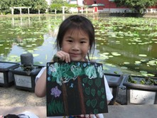 小朋友都圍在池塘邊欣賞美麗的池塘