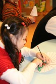 楚羚很專心地製作泰國紙傘