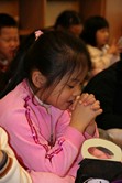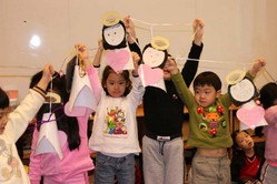 小朋友認真地聽著小兔老師的說明祈福大會的意義