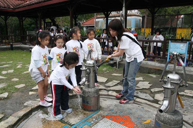 吃完午餐後,玩起古時的汲水器