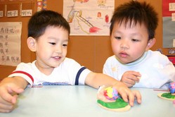 P3班的小朋友一起在雜誌中剪下各式髮型