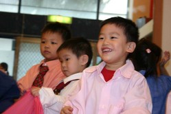 演奏完後,阿昌哥哥請小朋友吃糖果