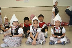 Baby班的小朋友看完包粽子教學後,和吳奶奶握手說再見