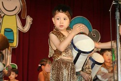 柏勳的阿拉丁坐在魔毯上,爸爸媽媽實在很有創意,讓柏勳站著也可以做柔軟功的瑜珈喔