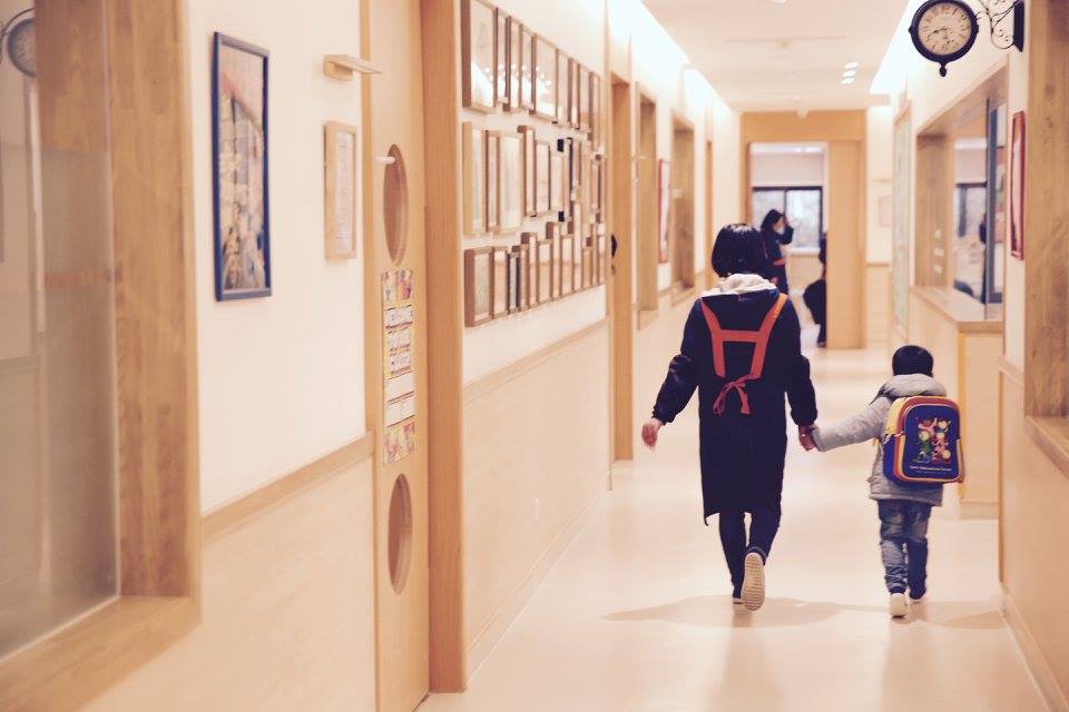 老師牽手進教室囉