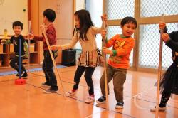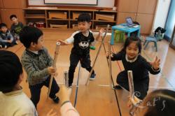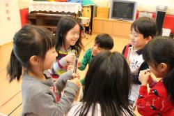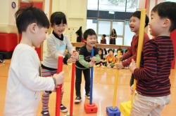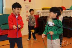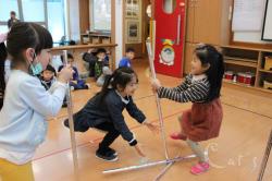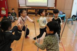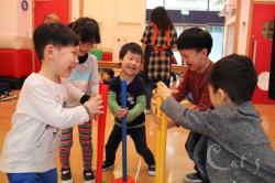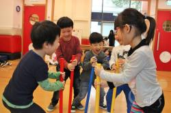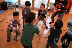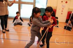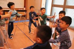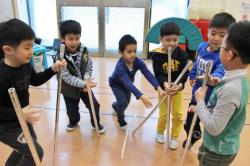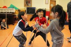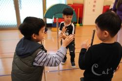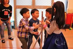 2017-3-29紐西蘭的歷史不長,但它的文化淵源卻相當精彩, 雖屬少數民族,但毛利人的文化卻可說是紐西蘭文化的精髓。毛利人是天生的藝術家,尤其在音樂與舞蹈方面更是顯著。在這兩週的紐西蘭跨文化活動中,由於毛利民族的歌曲音樂、韻律及節奏感非常強烈,因此深受凱斯大朋友、小朋友們的喜愛,也讓人很快就能朗朗上口,在校園的各個角落,不時會聽到孩子們開心的哼唱著呢!今天,凱斯的老師要來介紹紐西蘭的Poi舞及毛利人的長棍遊戲。Poi舞,早期是毛利女性的舞蹈,短繩的一端做為軟球,另一端握在手中,隨著音樂動用手腕的力量向不同的方向旋轉Poi。孩子們在練習Poi舞的過程中,都能跟著音樂一起擺動,也有小朋友會跟著毛利人用力的扭腰擺臀,活像個小毛利人,模樣真是可愛呀!另外,老師也帶領幼生一起來玩毛利的傳統遊戲-「長棍遊戲」,讓孩子們圍成圈圈並手拿長棍,聽從老師指令(毛利語Mahue-左邊/Matau-右邊),當老師說:Mahue-左邊。幼生則要向左邊移動,並且拿取左邊同學的棍子,最後不讓棍子落地者獲勝。在遊戲過程中,有些孩子反應動作相當迅速,有的孩子則為了搶快而失誤,一連串有趣又好玩的活動,爸爸、媽媽、爺爺、奶奶也可在家中與孩子們一起玩唷!