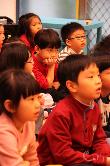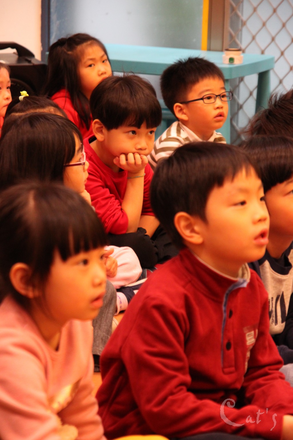 介紹1932年建立的建築物,孩子們看到山區,開心的說會有"蛇"