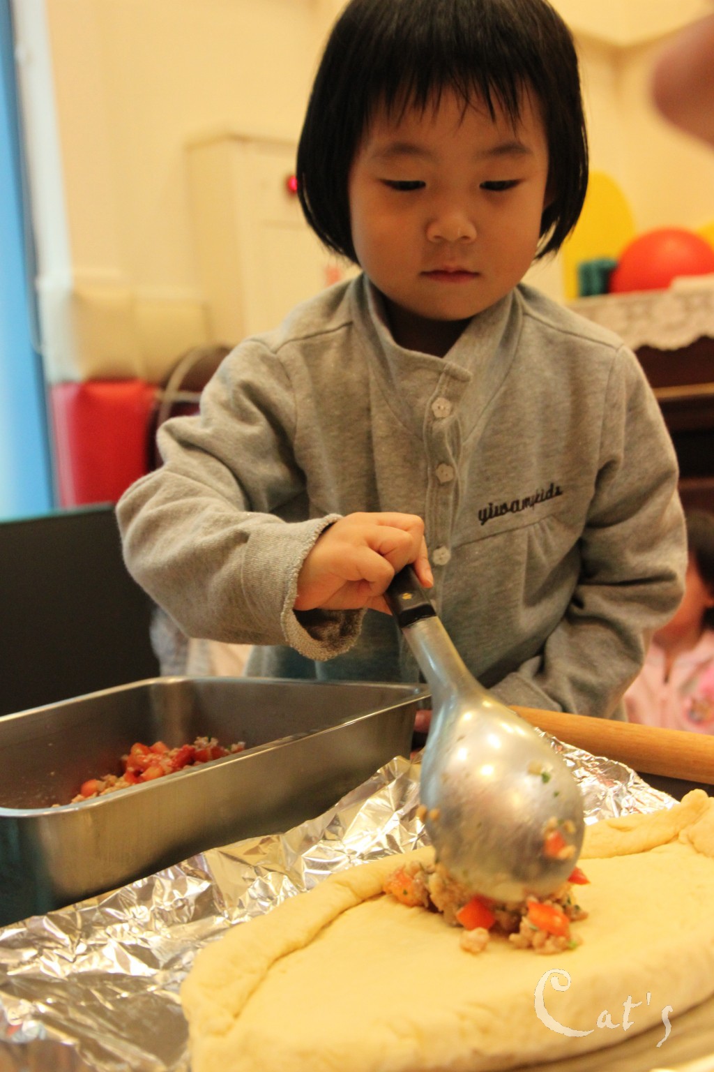 小朋友也來幫忙桿麵糰囉