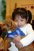 Isabell很勇敢地抱狗狗