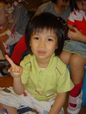 Baby班的Rati學著老師的動作,唱『中華民國頌』