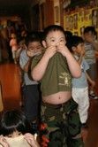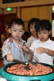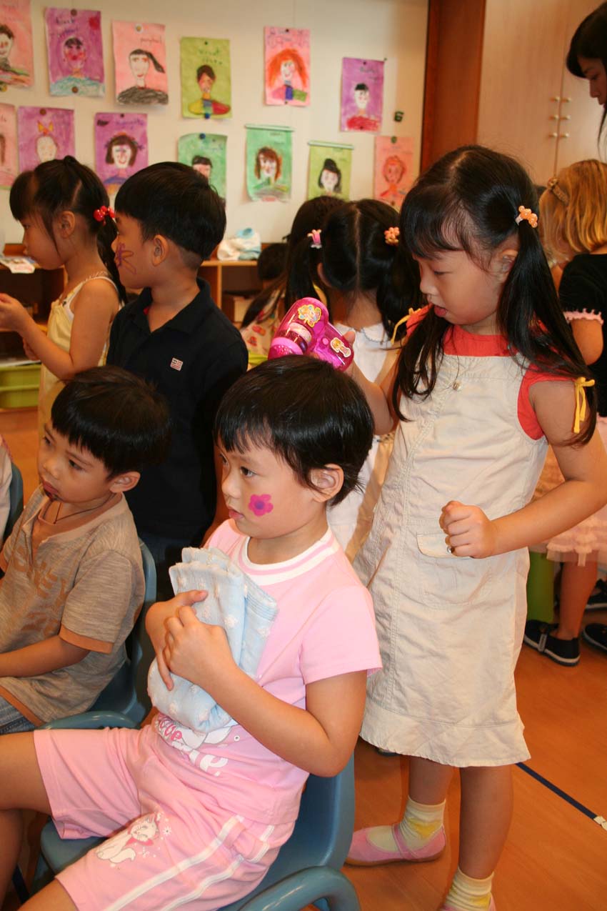 Baby班年紀小,不敢嘗試敷臉,Tiffany老師示範後請小朋友幫忙拿黃瓜