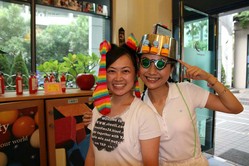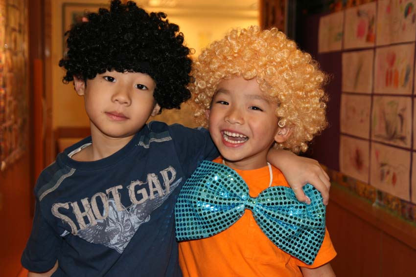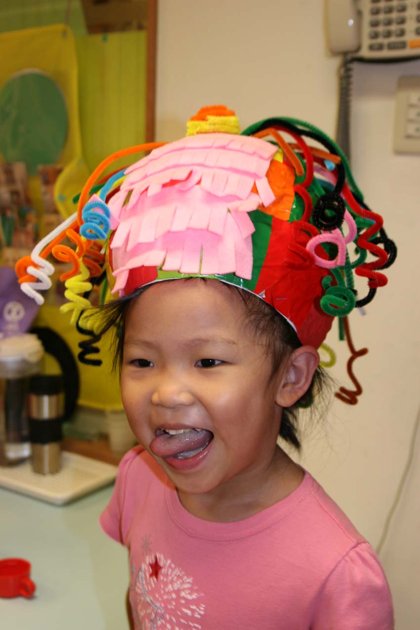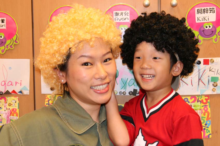 P1班的外語老師Febie也是搞怪地將襪子穿在頭上
