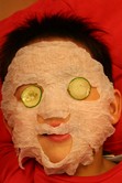 欣如將小黃瓜敷在眼睛上,放鬆一下