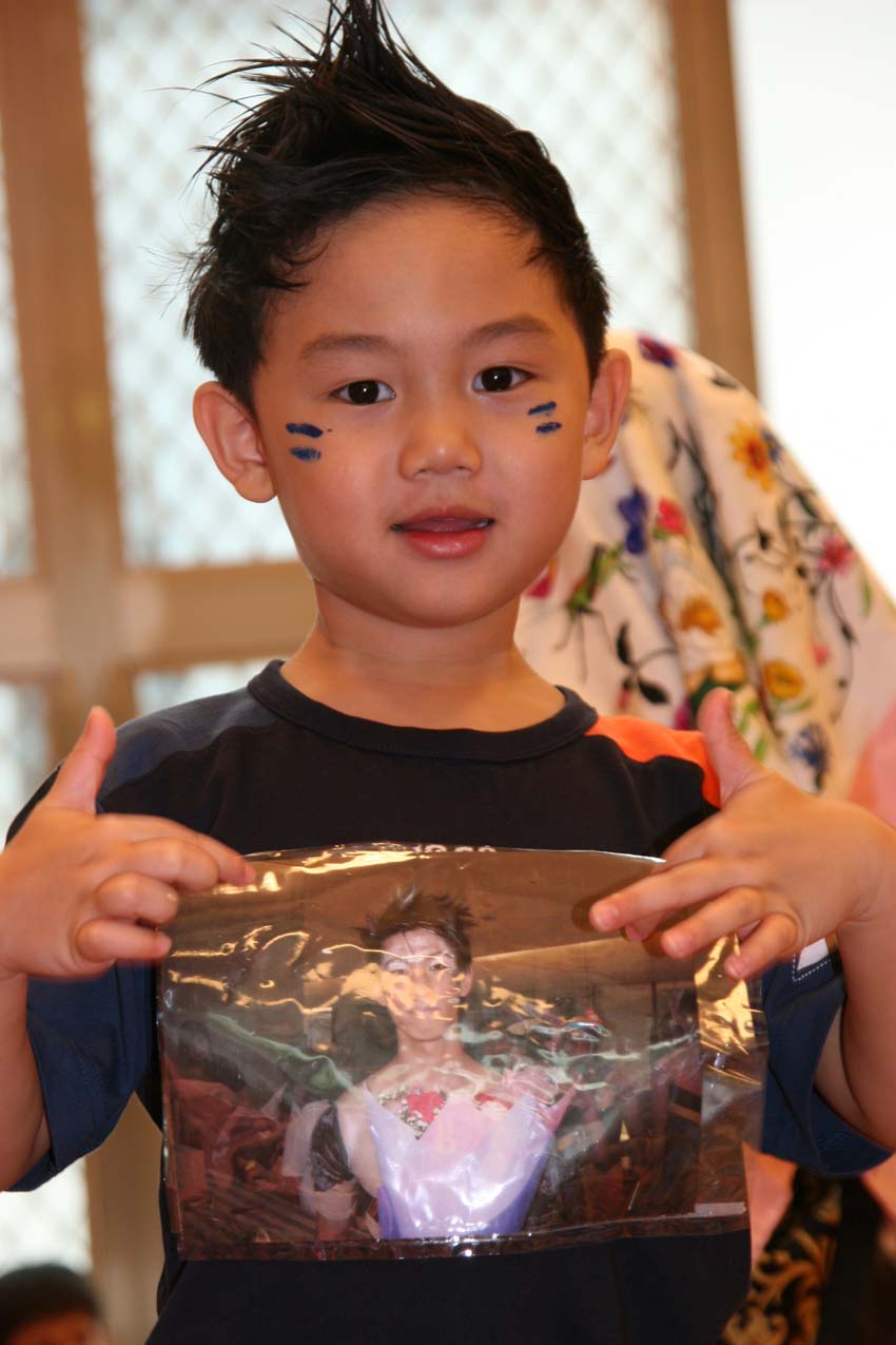 Ian完成身體彩繪囉!是小熊維尼的圖案喔