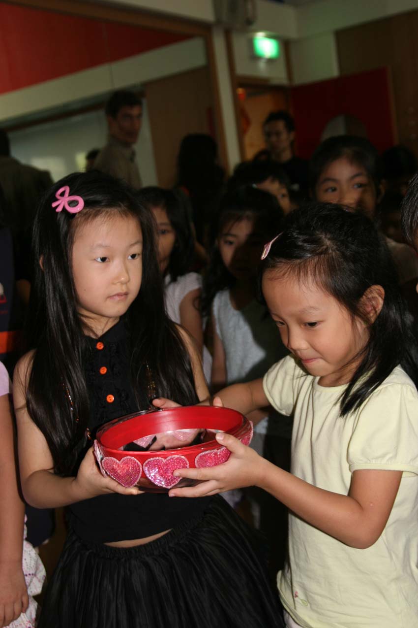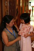 吳老師頒發獎品給獲勝的孩子