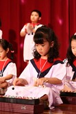 萱萱陶醉的使用鈴鼓表演