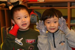 瑄庭頭上的手套是媽媽親手逢的唷