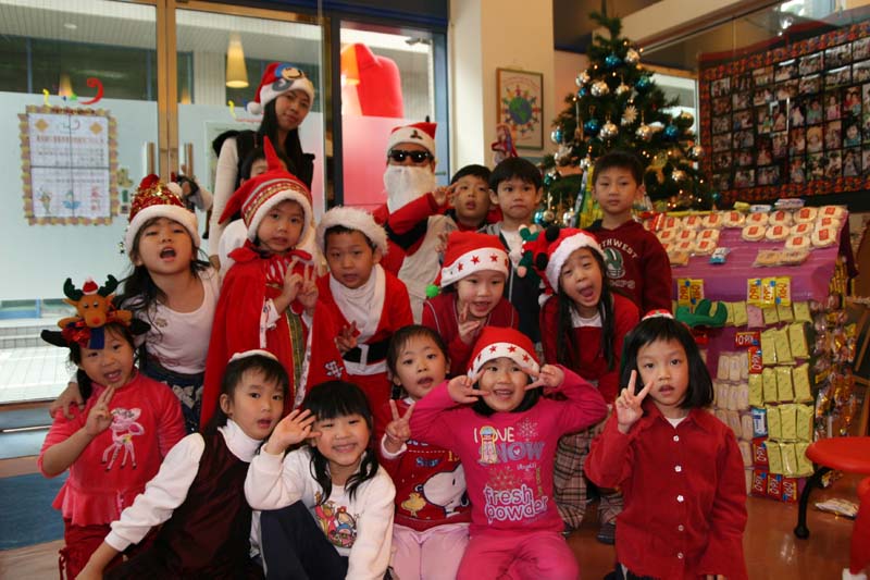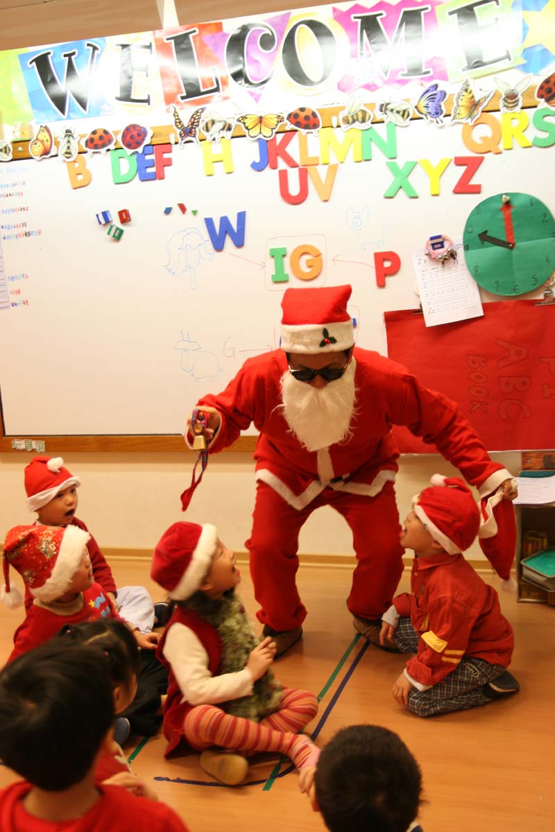 在教室裡看見聖誕老公公真是開心
