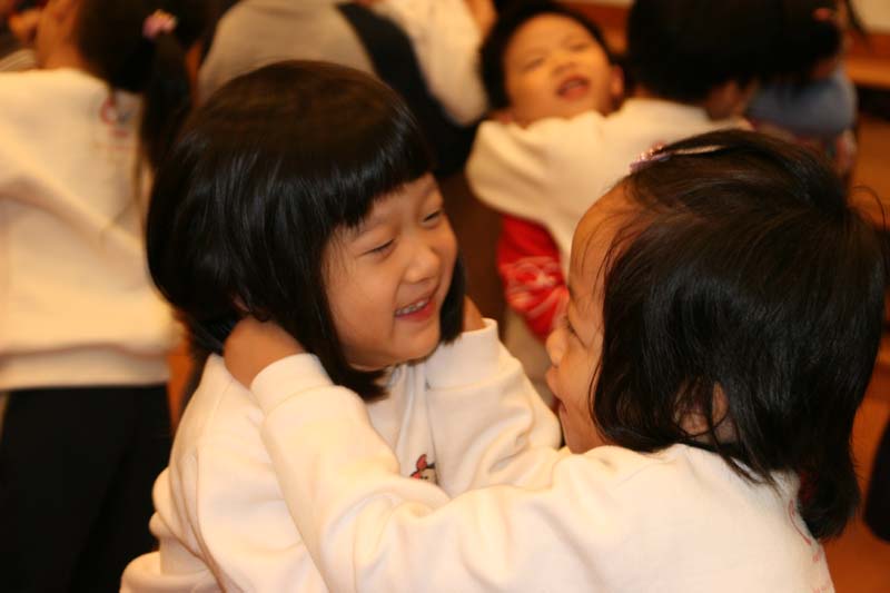 小朋友與吳老師一起快樂地玩蹺蹺板