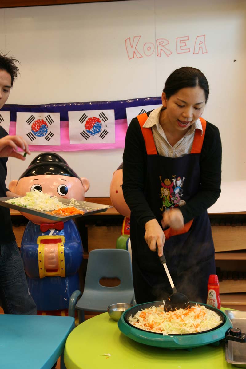 Tiffany老師將韓式海鮮餅的材料高麗菜加入
