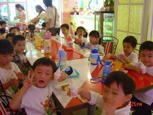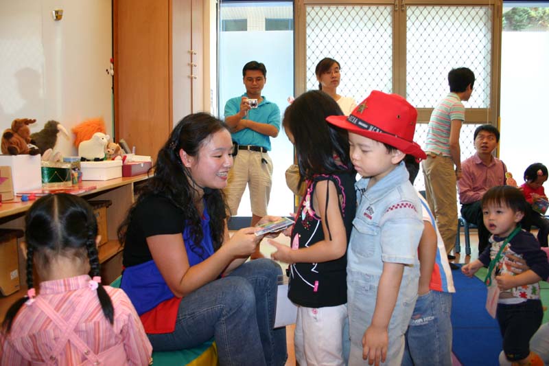 故事結束後,吳老師送給小朋友一份小禮物並和小朋友擁抱