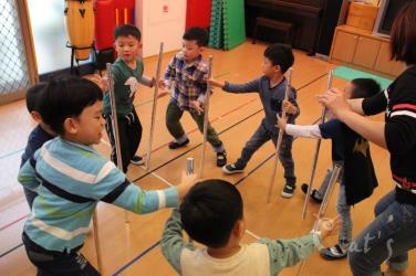 2017-3-29紐西蘭的歷史不長,但它的文化淵源卻相當精彩, 雖屬少數民族,但毛利人的文化卻可說是紐西蘭文化的精髓。毛利人是天生的藝術家,尤其在音樂與舞蹈方面更是顯著。在這兩週的紐西蘭跨文化活動中,由於毛利民族的歌曲音樂、韻律及節奏感非常強烈,因此深受凱斯大朋友、小朋友們的喜愛,也讓人很快就能朗朗上口,在校園的各個角落,不時會聽到孩子們開心的哼唱著呢!今天,凱斯的老師要來介紹紐西蘭的Poi舞及毛利人的長棍遊戲。Poi舞,早期是毛利女性的舞蹈,短繩的一端做為軟球,另一端握在手中,隨著音樂動用手腕的力量向不同的方向旋轉Poi。孩子們在練習Poi舞的過程中,都能跟著音樂一起擺動,也有小朋友會跟著毛利人用力的扭腰擺臀,活像個小毛利人,模樣真是可愛呀!另外,老師也帶領幼生一起來玩毛利的傳統遊戲-「長棍遊戲」,讓孩子們圍成圈圈並手拿長棍,聽從老師指令(毛利語Mahue-左邊/Matau-右邊),當老師說:Mahue-左邊。幼生則要向左邊移動,並且拿取左邊同學的棍子,最後不讓棍子落地者獲勝。在遊戲過程中,有些孩子反應動作相當迅速,有的孩子則為了搶快而失誤,一連串有趣又好玩的活動,爸爸、媽媽、爺爺、奶奶也可在家中與孩子們一起玩唷!