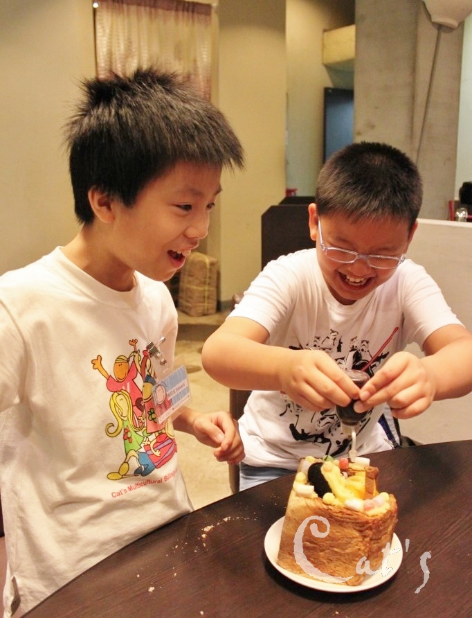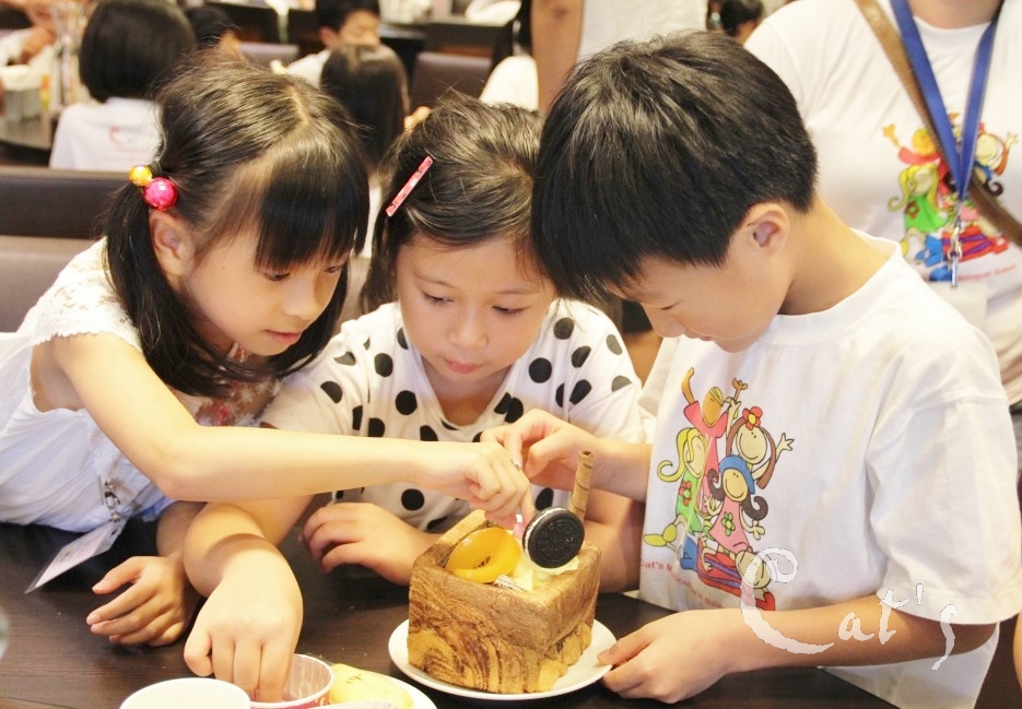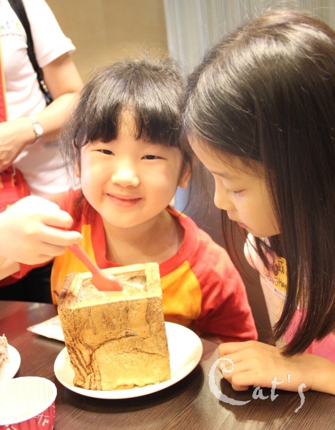 四個好朋友一起準備開始製作蜜糖吐司囉!