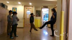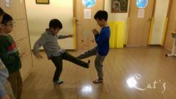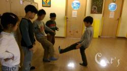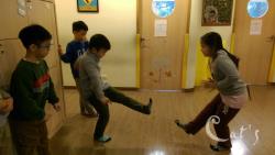 在聽完老師的講解後,小朋友輪流當討戰者挑戰全班,有的挑戰者像射門進球一樣踢進很多分,有的被挑戰者則是穩穩的守住球門沒被得分,每個小朋友挑戰過後則由最高分者為贏家。
