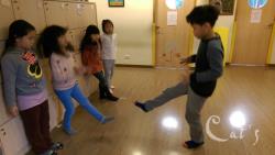凱斯世界童玩營在今天揭開序幕,接下來的七天,小朋友們將會遨遊五大洲,各個洲將會有個代表國家,老師將帶領小朋友們認識並體驗這個國家的童玩。今天來到位於非洲的迦納(Ghana),這個國家的小朋友喜歡玩一種類似剪刀、石頭、布的遊戲,遊戲名稱為Ampe,只是這遊戲是用腳來猜拳。遊戲由一個小朋友先當挑戰者,可以挑戰一人或是多人,挑戰者與被挑戰者面對面站著像照鏡子一樣,接著兩人一起跳兩下,並同時拍兩下手,之後兩人同時踢出左腳或右腳,計分方式是,兩人假如踢出對稱的一腳,像是一人的左腳對上另一人的右腳,則挑戰者得一分,反之則沒分。