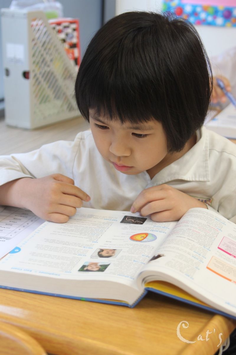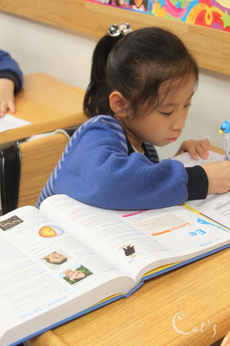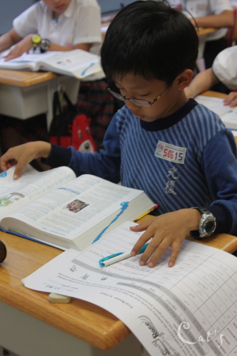 眼睛不停的在字典及考卷之間來回查看